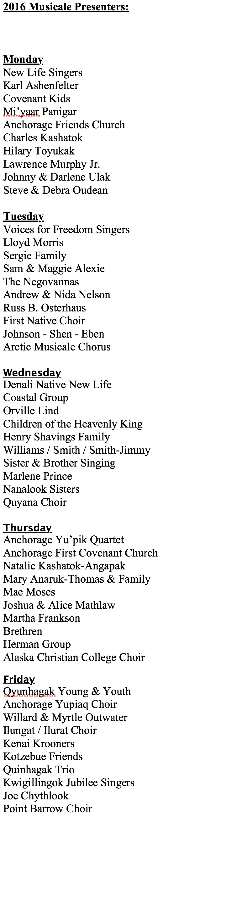 2016 Musicale Participants