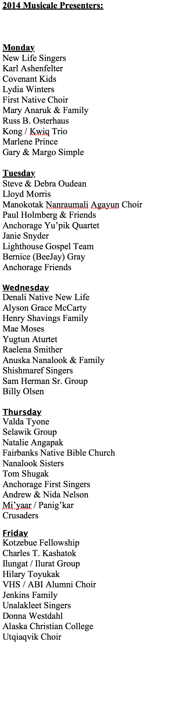 2014 Musicale Participants